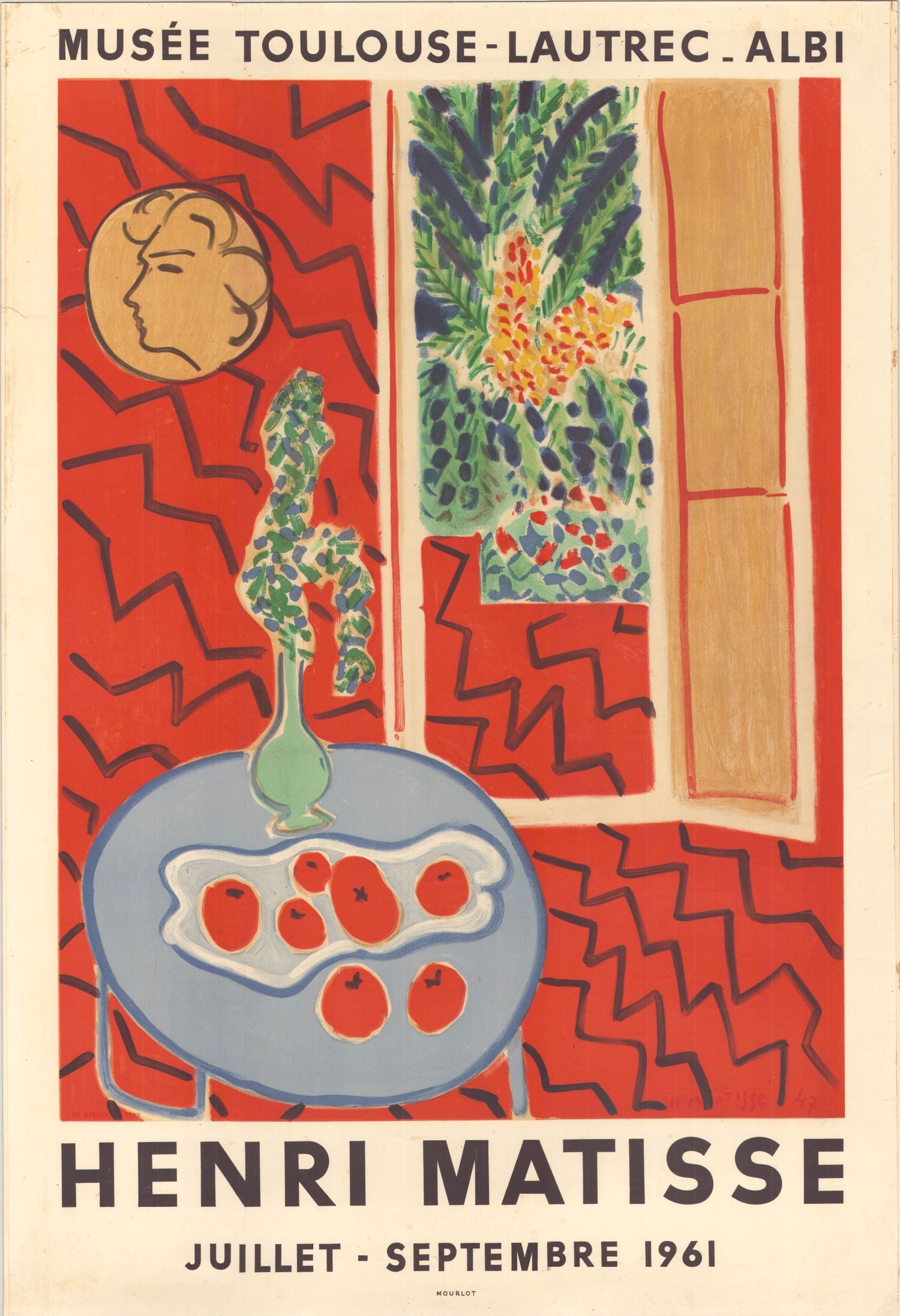 Artist: Henri Matisse (1869-1954) the French artist, draughtsman, printmaker, sculptor and painter was one of the undisputed masters and influential artists of 20th century art. He studied at the École des Beaux-Arts in Paris and would quickly become the leader of the fauvist movement. He was known for his use of brilliant colour, inspired by his time on the French Riviera, and his fluid and original draughtsmanship. He was one of the three artists, along with Picasso and Marcel Duchamp, who began to revolutionise the artworld from the 1900s. For over 60 years, his vast output included painting, drawing, sculpture, graphic arts – etchings, linocuts, aquatints, paper cut-outs and book illustrations. And he worked with Mourlot studios on lithographs and exhibition posters.